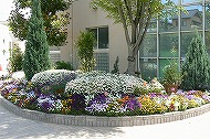 本校PTA環境・厚生委員会で育成しております玄関付近の花壇が