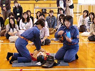 ◆消防署のご協力の下、1年生の保護者を対象にした水難救助講習会が行われました。