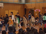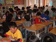 あいにくの雨のため、体育館および教室内で行われることになりましたが、
