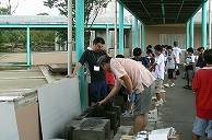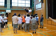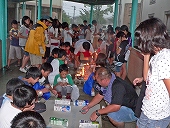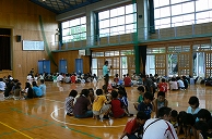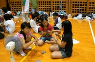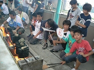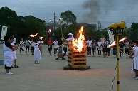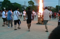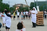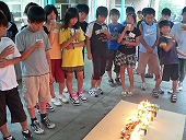 火文字、今年のテーマは「気力」 この言葉をテーマに、校長先生がお話もしてくださいました。 その後、打ち上げ花火を鑑賞。子供達から歓声が上がりました。 消灯後、父親の会は多目的室で反省会。 お父さんたち、まだまだがんばります!