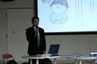 講師に小郡市人権・同和教育課 指導主事の井上秋光先生をお招きして、 演題 『子どもたちの人権感覚を高める学習と保護者のかかわり』についてお話を伺いました。