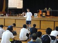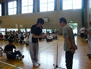 表彰を受けるN田委員長。のぞみ小MVPを獲得したS上さん。