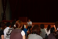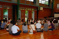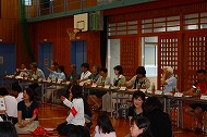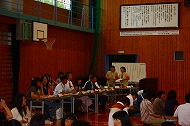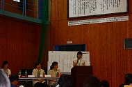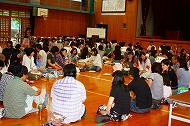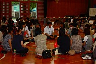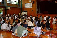 | 警察の方からは、校区内に関わらず少年犯罪の具体的なお話がありました。 学団別グループ討議では地域での遊びの中での問題など様々な意見が出されていました。 |