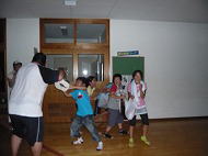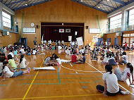 このキャンプは、子どもたちが通う学校で友達と一緒に体育館に泊まり