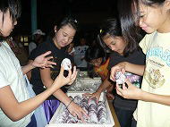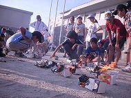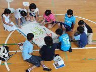 開会式の後は、各班に分かれて「旗」作り。