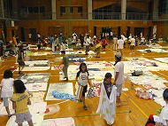 夜は体育館でゴロ寝です。