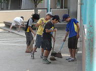 そろそろ・・・楽しかった学校キャンプもおしまいです。「来た時よりも美しく」きちんとお掃除もします。
