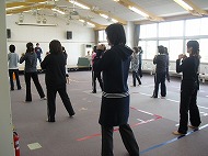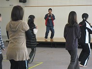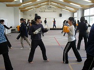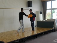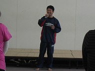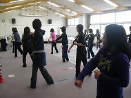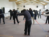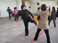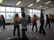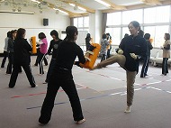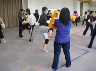 次は、基本の構えを教わり、パンチやキック。会場には音楽が流れ、それに合わせて皆さん体を動かされてました。