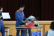 親子給食同日、一年生の保護者対象に水難救助講習会が開かれました。