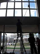 子どもたちでは届かない高い所や、窓のレールの細かい所の隅々まで、掃除していただきました。