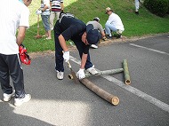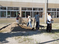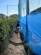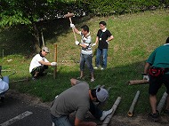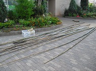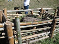 当日、先生方と父親の会の皆さんにより、駐車場奥に花壇や畑に使用する為の、腐葉土の保管場所が完成しました。