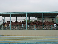 | 今にも降り出しそうな暗雲の下、5年生水泳記録会が行われました。途中から雨が降り出し子供たちには肌寒い記録会となりましたが、競技中は泳者も応援者も一生懸命な姿がみられました。 |