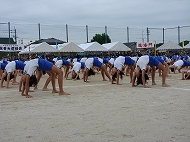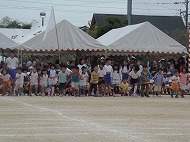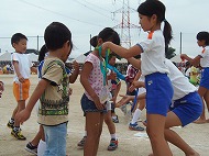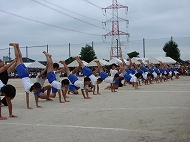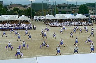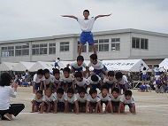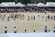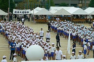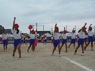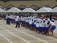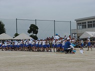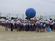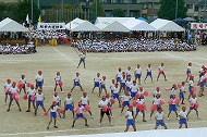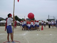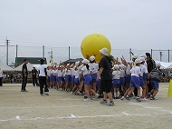 | 団競:手から手へ 1年生から6年生まで協力して玉を運びました | |||