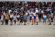 | 走:もうすぐ一年生 お兄さん、お姉さんからメダルをかけてもらいました | |||