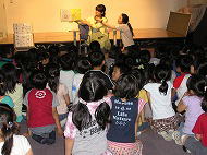4月25日に読み聞かせボランティアの発会式が行われ、読み聞かせの内容や方法についての説明、簡単な講習がありました。