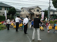 なかよし班の集合場所には、 保護者の方も出向き、子ども達へ 声をかけて見送りました。 |