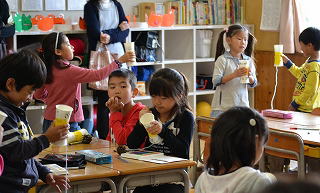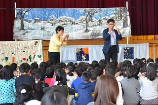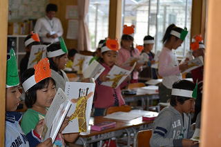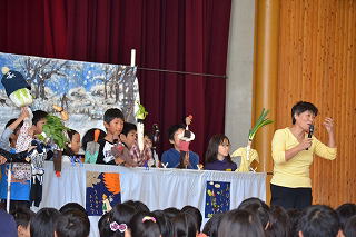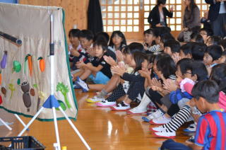 4年生は食育の授業で野菜の大切さを勉強しました。野菜の人形劇も頑張りました。