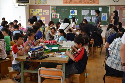 6月8日、土曜参観が行なわれました。 今回も土曜日であり、多くの父兄の参加で大盛況でした。 1年生から5年生は学習参観、6年生は、体育館で学習発表会が行われました。