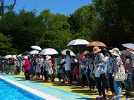 | 梅雨が明け、夏空が広がる7月11日、5年生による水泳記録会が行われました。 | ||