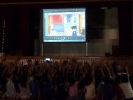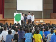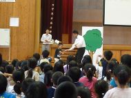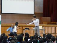 | 防犯教室では、警察署の方から、子ども達が不審者や身近な犯罪から身を守る方法を教えて 頂きました。 映像を見たり実演したり、とても分かりやすい内容で、みんな興味を持ってお話を 聞いていました。 |