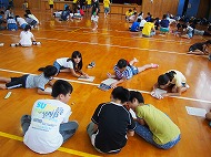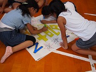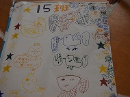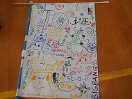 | 班毎に班旗を作ります。それぞれ絵や文字を書いて、完成! 上手く出来たかな〜? |