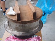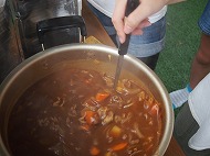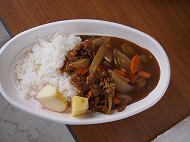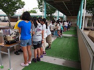 | いつもなら、かまどを作って飯ごう炊飯なのですが、このお天気です。 炊き上がったご飯が用意されました。 自分達で作ったカレー、外で食べると余計においしいね!(^^)! おかわりもたくさんしました。 |