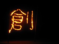| 今年の文字は創造力の『創』。 小雨が降っていましたが、きれいな花火が打ち上げられました。 |