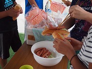 | 朝食は、ホットドック。牛乳パックに入れて焼くとおいしいのですが、 天候不良で火を使う事が出来ず残念(>_<) |