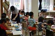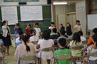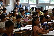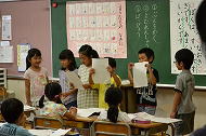 低学年:先生の話をよく聞いて、真剣に取り組んでいました。前に出て、発表することもずいぶん慣れてきました。