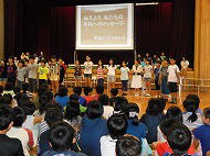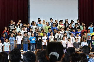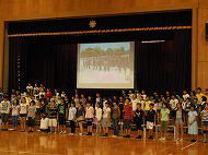 6年生は4月から取り組んできた「見つめよう、平和への旅」のまとめの発表で、歴史、学び、表現、メッセージの4グループに分かれて歌や言葉、劇などで表現されました。5年生は来年のお手本を真剣に聞いていました。