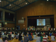 | 7月4日に土曜授業が行われ、多くの保護者の方が参観に来られました。 1年生〜5年生は各教室で学習参観があり、6年生は体育館で平和学習発表会がありました。 |