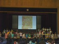 | 修学旅行で訪れた長崎で、戦争や平和について学んだことを伝える表現活動に取り組みました。 1〜5年生も、1校時・2校時に分かれて参観しました。 戦争や平和について、たくさんの事を学び、感じることができました。 |