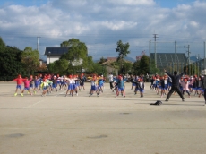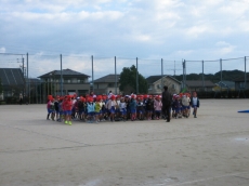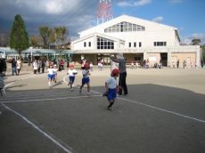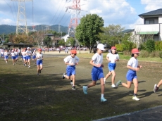 1年生は運動場外回りを3周走りました。2年生は外回り4周です。約1キロあります。