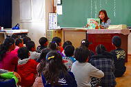 | 朝の絵本読み聞かせから始まりました。読み聞かせ係の方の選りすぐりの本をとても楽しそうに聞いていました。 | |||