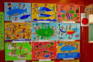 | 廊下には素晴らしい作品が飾ってあり、賑やかでした。また靴はとってもきれいにならんでいました。 | |||