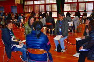 | 光安先生からのお話の後、5、6人のグループで自己紹介を含めてディスカッションが行われました。10分くらいずつでメンバーを交代し、3回のディスカッションが行われ、活発な意見交換会となりました。 | |||