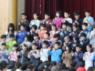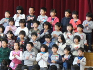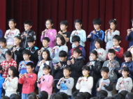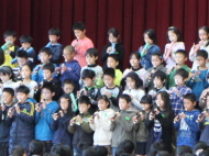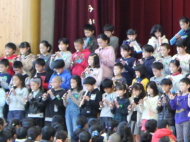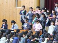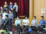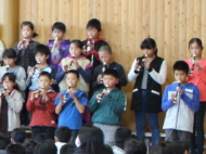 1年生から5年生が、6年生に感謝の気持ちを込めて、歌や合奏、言葉の出し物を披露してくれました。