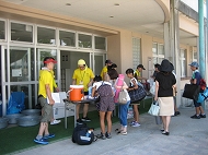 親父の会のお父さん方やPTA役員さん、ボランティアの保護者の皆さんが6年生をお出迎えです!