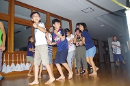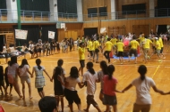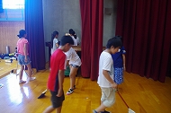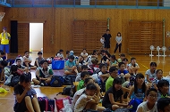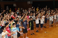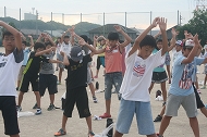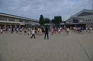 楽しくて興奮して眠れなかった子供達も、朝は元気にラジオ体操です。