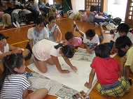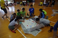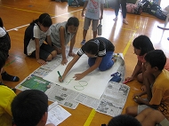 班ごとに班旗を作ります。話し合いながら作成していきます。