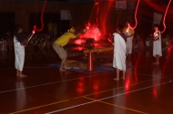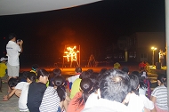 雨の日バージョンのキャンプファイヤーでは、いろいろな仕掛けがあり、子供達も興味津々でした。