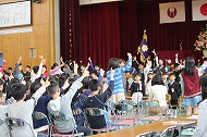 | 6年生が楽しい学校紹介や歌「ドキドキドン! いちねんせい」 を歌ってくれました。 |