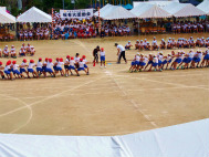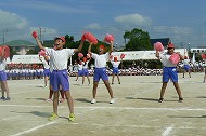 | 1年生は初めての運動会。 6年生は最後の運動会。 応援がんばってました。 |