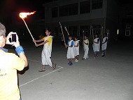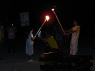 | 火の神と火の子の登場! | 神聖な炎を火の神から受け取ります | |