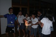 校長先生からのお話と、火文字。1日目の終了です。