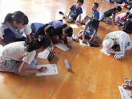キャンプは班ごとでの行動になります。班のみんなの気持ちを一つにするために班旗を作ります。