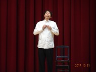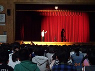教育や人権など多様な視点から子育てや教育問題にメッセージを送る語り部としてご活躍されている福永宅司さんによる人権講演会が開かれました。椅子ひとつの一人芝居でしたが、何もない舞台から映像が見えてくるほど、子供たちや大人の心に強く響いた事と思います。涙を流しているこどもたちも居て、とても有意義な一時間でした。