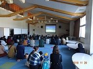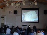 懇談会の前に、多目的室にて「20周年記念式典」で披露された空撮映像の上映会が行われました。