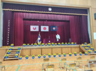 令和5年度 第25回入学式 2023-04-15 2023年4月12日(水)に第25回の入学式が行われ、 85名のかわいい新1年生が入学してきました。 新しい環境に不安や緊張がある中、落ち着いて入場し、 校長先生の話を聞くことができていました。 おはよっピーも駆けつけてくれました。 新1年生への祝電もたくさん届いていました。 ご入学おめでとうございます。 少しずつ小学校生活に慣れ、楽しい思い出がたくさんできるといいですね。