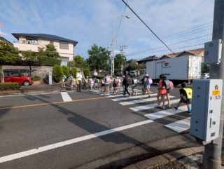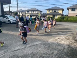子どもたちは仲良し班で元気に登校し、蒸し暑い中でも汗をかきながら、「おはようございます!」と元気に挨拶を交わす姿が見られました。